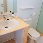 I Ferienhaus In Can Picafort, Nahe Playa De Muro, 4 X Schlafzimmer Mit Bad har ett badrum med en separat toalett och en dusch. Gästerna kan också utnyttja hårtorkar, badlakan och handdukar.